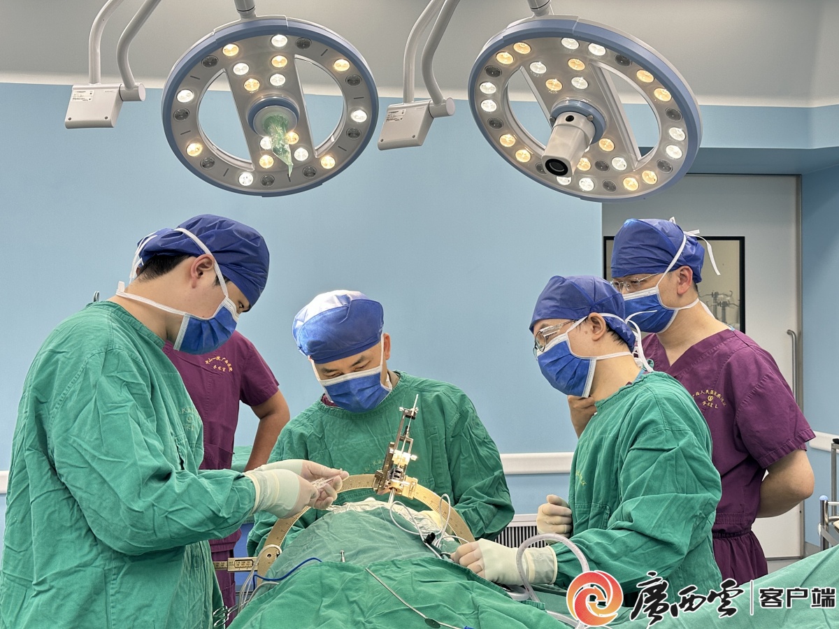 广西医疗团队在进行首例脑机接口手术。中山大学附属第一医院广西医院供图 问:什么是脑机接口? 杨超:脑机接口是近年来全球生命科学与信息技术领域的热门话题和前沿科技,也是我国科技创新的重点发展方向之一,其布局发展已被纳入“十五五”规划建议。这项前沿技术可为数亿患者的脑健康管理、神经系统疾病诊疗及功能康复提供革命性解决方案。 今年1月,由国家药监局批准的我国首部脑机接口医疗器械行业标准——《采用脑机接口技术的医疗器械术语》正式实施,该标准首次精准定义了脑机接口医疗器械概念:通过侵入或非侵入的方式,测量中枢神经系统产生的神经信号并实时解码,实现患者与外部辅助或诊疗设备的实时双向交互或闭环反馈,达到改善、修复或替代中枢神经系统功能等临床效果的有源医疗器械。 大家可以把脑机接口理解为大脑和脊髓与外部设备之间的“翻译官”或“桥梁”,把人体的神经信号转化为机器能读懂的指令。有了这项技术的落地应用,大家才能看到诸多医学奇迹,诸如,困扰帕金森病患者多年的抖、慢、僵等症状消失了;截瘫患者可以通过意念控制机械设备恢复部分生活能力;语言障碍患者能够重新与外界交流等等。 问:脑机接口手术是什么? 杨超:脑机接口手术是一种能够改善人类生命质量的治疗方式。 从形式上说,脑机接口技术诊疗分为侵入式和非侵入式:侵入式需要手术植入,有创,但信号采集分析相对稳定、质量高,创伤也不会很大;非侵入式则无需手术,无创,相对比较方便。 团队前段时间开展的广西首例脑机接口脑起搏器手术治疗帕金森病,是在患者胸部皮下植入一块比普通火柴盒稍大的刺激器,大脑中则植入两根细微电极,通过发射电脉冲刺激大脑里的特定核团,从而改善患者震颤、僵硬、运动迟缓等症状。 手术中应用的脑起搏器搭载了脑机接口和人工智能技术的设备,首次实现读脑-分析-反馈-调节的完整闭环治疗。在治疗的同时,设备能精准采集患者脑内与症状相关、比刺激脉冲小100万倍的异常脑电信号,并实时分析,动态调整治疗参数,从而根据每位患者的症状提供个体化治疗。 目前该患者正稳步康复中,在用药量较术前减少的情况下,她已能顺利完成拿水杯喝水等此前难以完成的动作。待脑起搏器正式开机后,配合刺激参数与药物调整,患者运动功能将大幅改善,实现生活自理。
