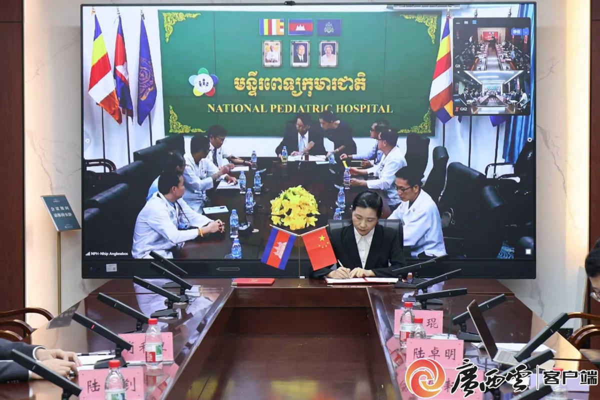 3月26日,中国广西壮族自治区人民医院与柬埔寨国家儿童医院通过视频连线举行谅解备忘录签署仪式。