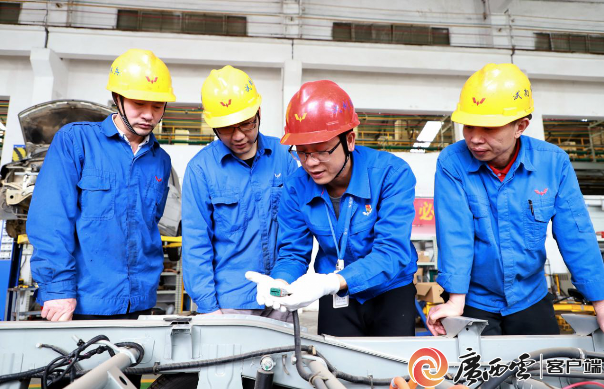 陈显鑫在和同事们讨论底盘件方面问题。广西汽车集团供图 这样的攻关故事,在陈显鑫的职业生涯中数不胜数。 他独创的“汽车异响故障搭桥式听诊排除法”,能快速锁定转向、动力及后桥传动异响的源头;他发明的“异形上部车身对角误差控制法”,每年可为公司节约开发成本70余万元;他创造的“动力总成实配车身改制替补法”,让同一样车平台可以适配多款动力总成,实现平台多样化…… 截至目前,他累计完成近95项技术问题攻关,并有超过210项各类型的试制方案被研发工程师采纳并应用到产品生产上。